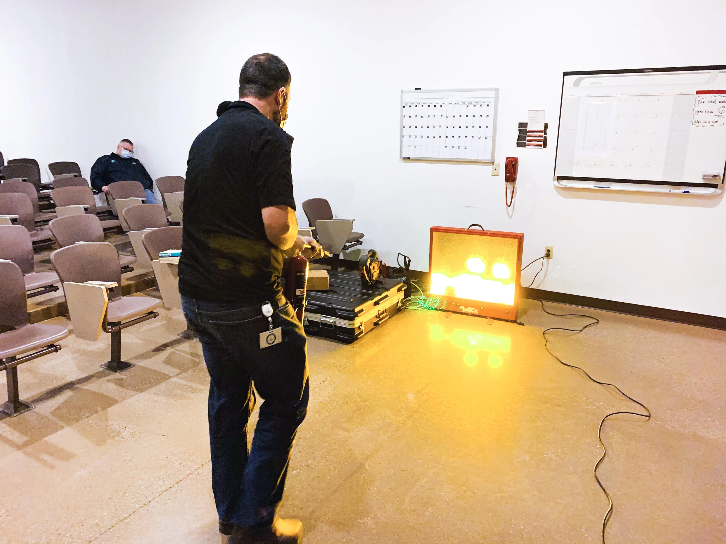 Our fire extinguisher training classes are interactive and are designed to help you learn by doing. While we can train you using a live fire if you’d like, we also have a digital simulator. With the digital simulator, you’ll get to practice the techniques and avoid the extra cost of refilling your fire extinguishers. You also won’t have to worry about inclement weather on the day of training, because it can be done indoors.